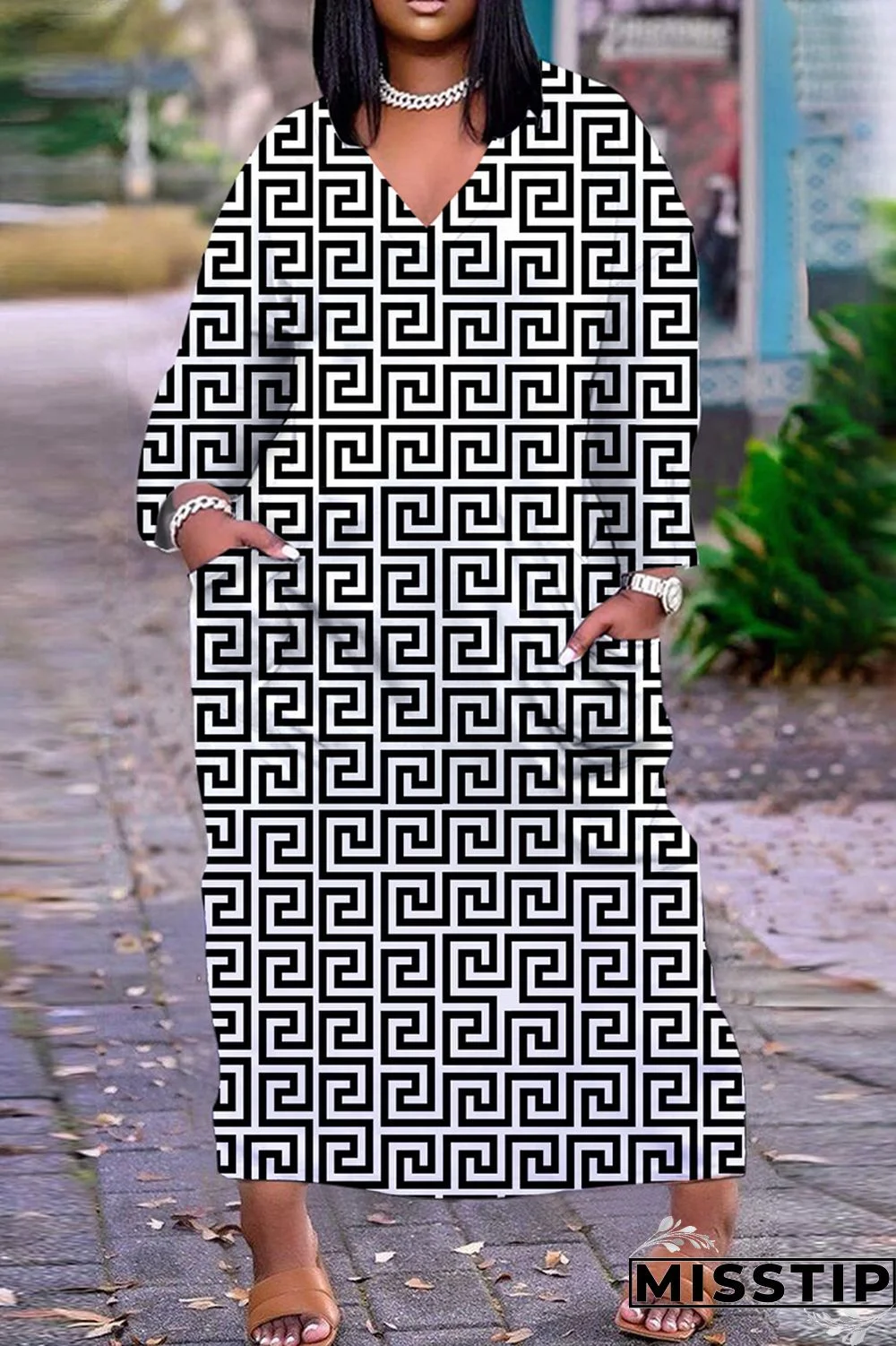 | Tag | Long Sleeve , V Neck , Print , Patchwork , Loose , Plaid , Straight , Floor length , Street , Full Print , Imitation Cotton |