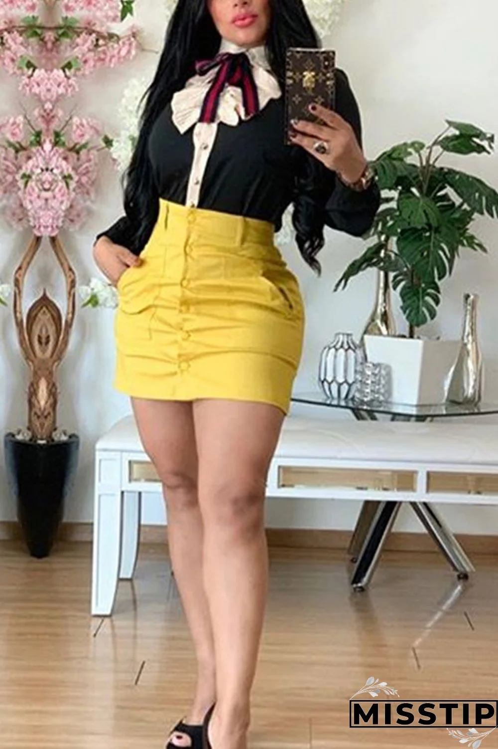 | Product Name | Black Turndown Collar Long Sleeve Solid bow-knot Patchwork Slim fit Blouses & Shirts |