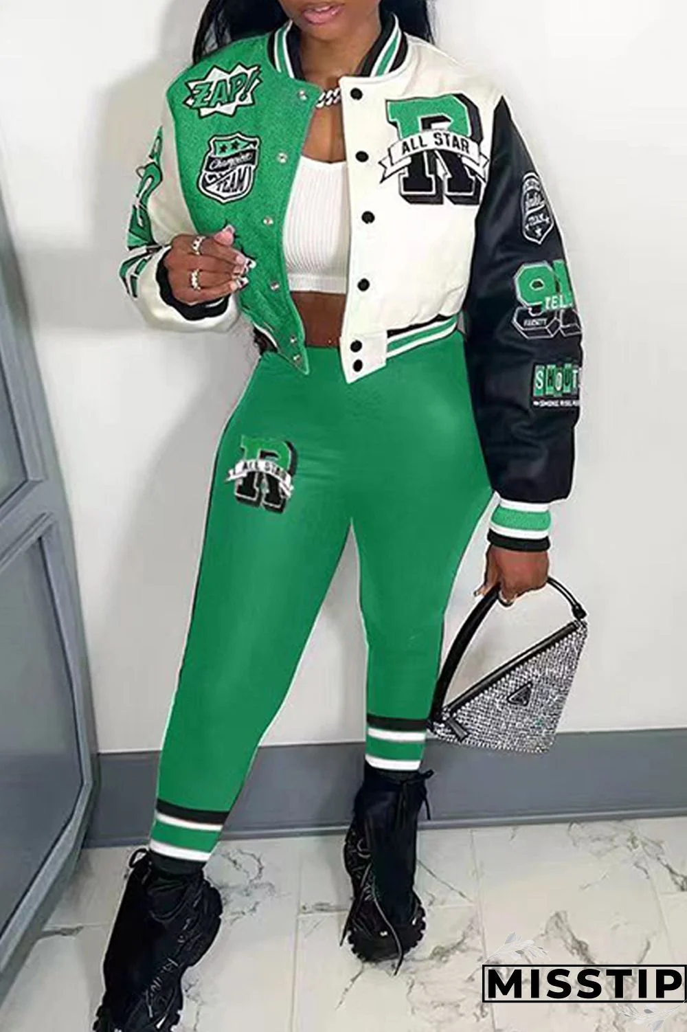 | Product Name | Green Casual Letter Print Patchwork Cardigan O Neck Long Sleeve Two Pieces |