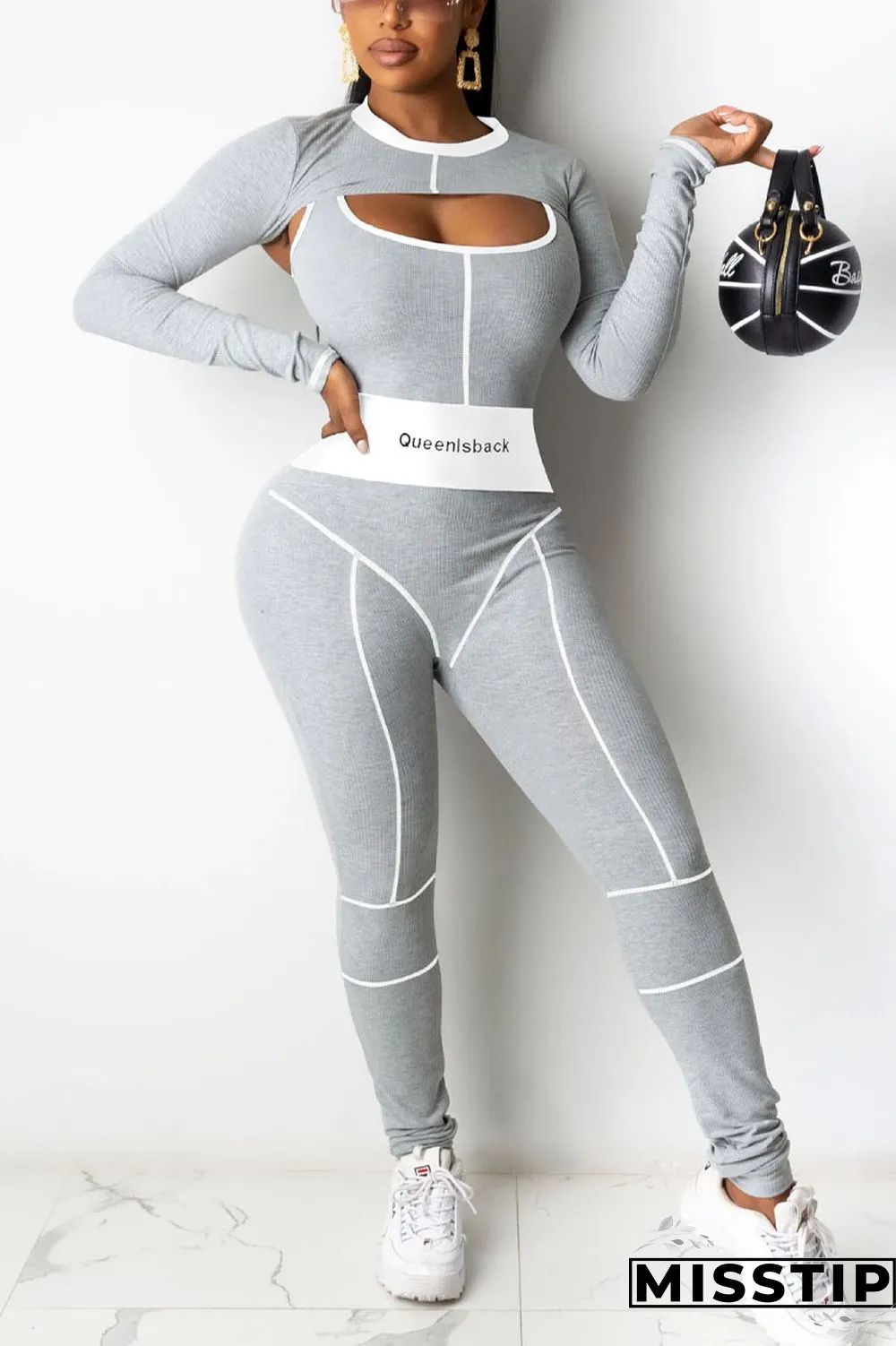 | Product Name | Grey Casual Striped Embroidered Patchwork O Neck Long Sleeve Two Pieces |