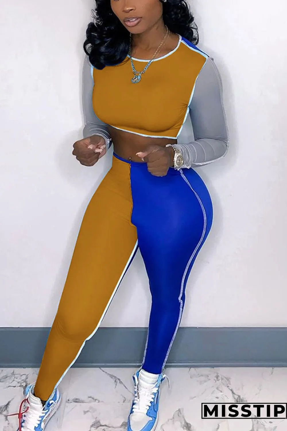 | Product Name | Orange Casual Solid Patchwork O Neck Long Sleeve Two Pieces |